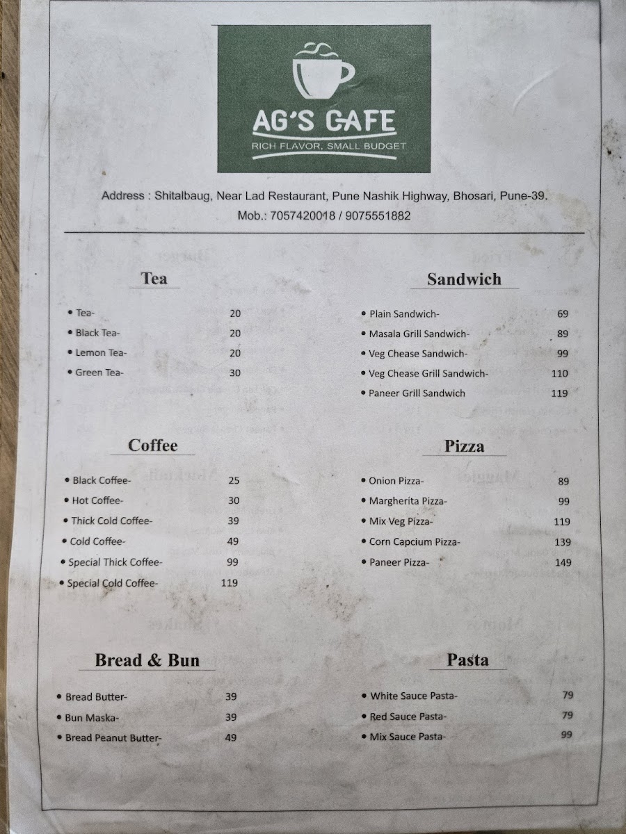 AG's Cafe Bhosari ( best cafe in bhosari) Menu